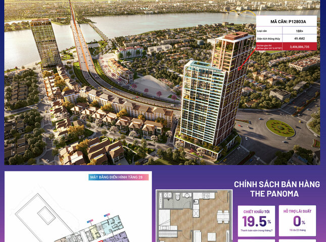 Sản phẩm P12803A nằm trong phân khu The Panoma, tòa P1, tầng 28 dự án Sun Cosmo Residence Đà Nẵng.