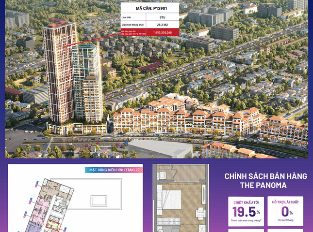 Sản phẩm P12901 nằm trong phân khu The Panoma, tòa P1, tầng 29 dự án Sun Cosmo Residence Đà Nẵng.