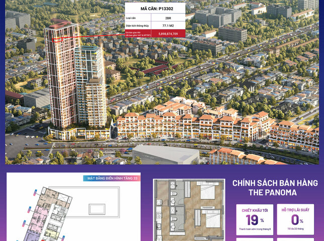Sản phẩm P13302 nằm trong phân khu The Panoma, tòa P1, tầng 33 dự án Sun Cosmo Residence Đà Nẵng.