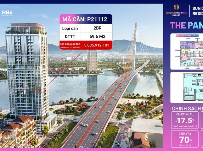 Sản phẩm P21112 nằm trong phân khu The Panoma, tòa P2, tầng 11 dự án Sun Cosmo Residence Đà Nẵng.