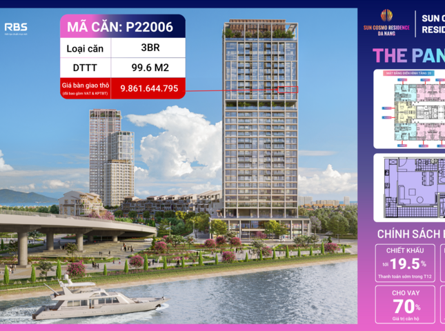 Sản phẩm P22006 nằm trong phân khu The Panoma, tòa P2, tầng 20 dự án Sun Cosmo Residence Đà Nẵng.