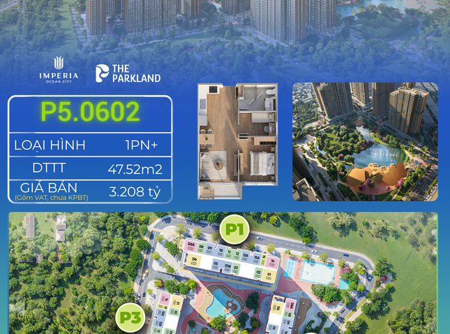 Sản phẩm P5.0602 nằm trong phân khu Parkland, tòa P5, tầng 06 dự án Imperia Ocean City.