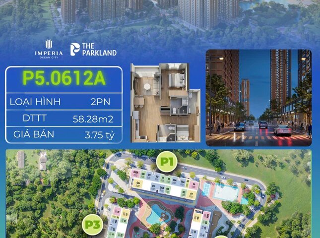 Sản phẩm P5.0612A nằm trong phân khu THE PARKLAND, tòa P5, tầng 06 dự án Imperia Ocean City.