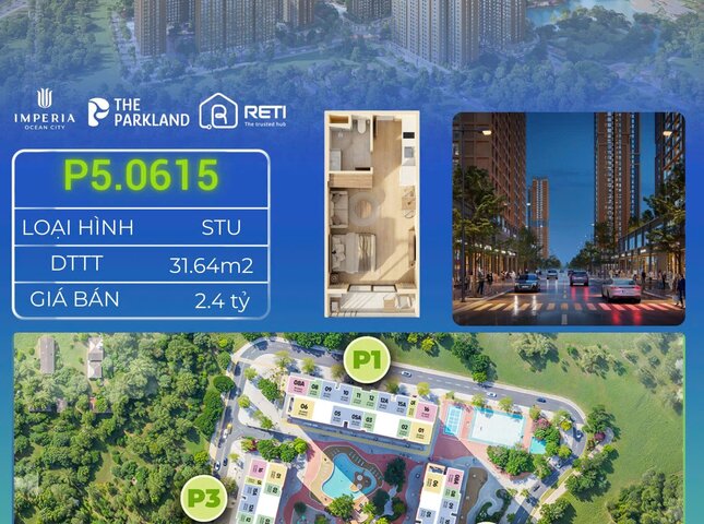 Sản phẩm P5.0615 nằm trong phân khu THE PARKLAND, tòa P5, tầng 06 dự án Imperia Ocean City.