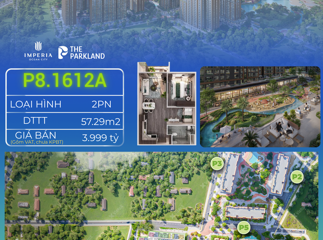 Sản phẩm P8.1612A nằm trong phân khu Parkland, tòa P8, tầng 16 dự án Imperia Ocean City.