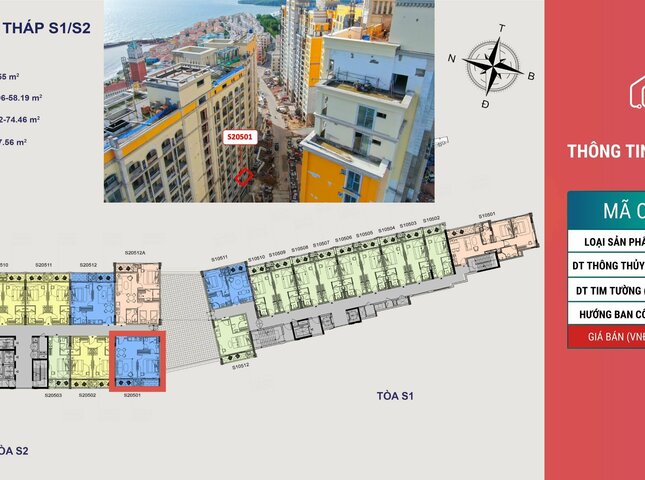 Sản phẩm S20501 nằm trong phân khu The Sea, tòa S2, tầng 05 dự án The Sea - Sunset Town.