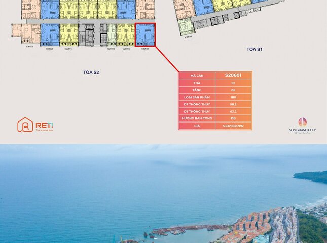 Sản phẩm S20601 nằm trong phân khu The Sea, tòa S2, tầng 06 dự án The Sea - Sunset Town.