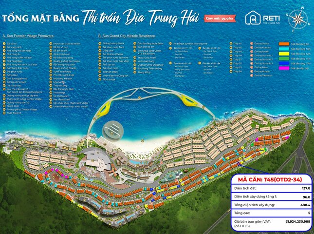Sản phẩm T45 nằm trong phân khu The Center, đường/dãy Taormina, dự án The Center - Sunset Town.